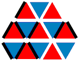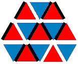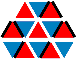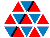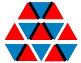 Links und rechts von den Dreiecken, sowie zwischen den Dreiecken können